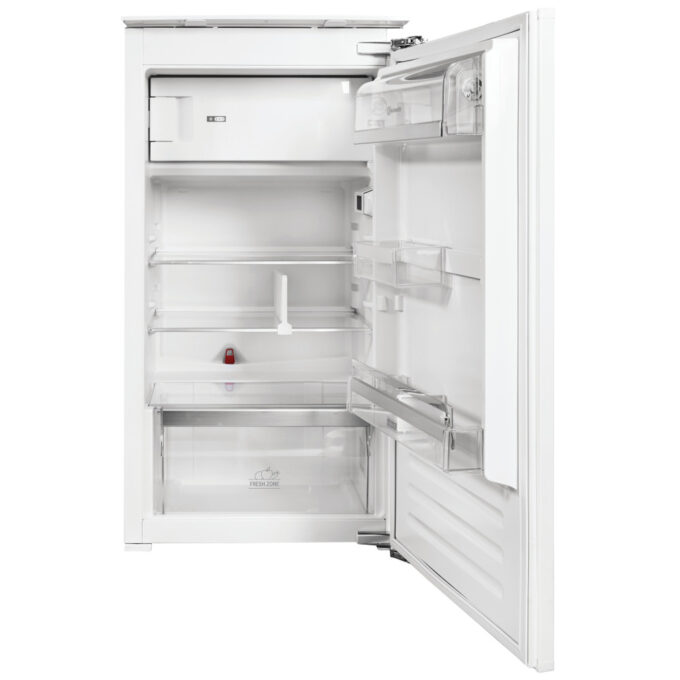 De inbouwkoelkast Bauknecht KSI 10GF2 heeft een energieklasse E en een jaarlijks verbruik van 149 kWh. Met een totale inhoud van 149 liter (131 liter koelruimte en 18 liter vriesruimte) biedt het apparaat voldoende opslagcapaciteit. Voorzien van automatische ontdooifunctie, stille werking, en SETMO-Quick voor snelle installatie. Het geluidsniveau bedraagt slechts 35 dB. Dit product heeft mogelijk een krasje of deukje vanwege transportschade, maar functioneert verder perfect.